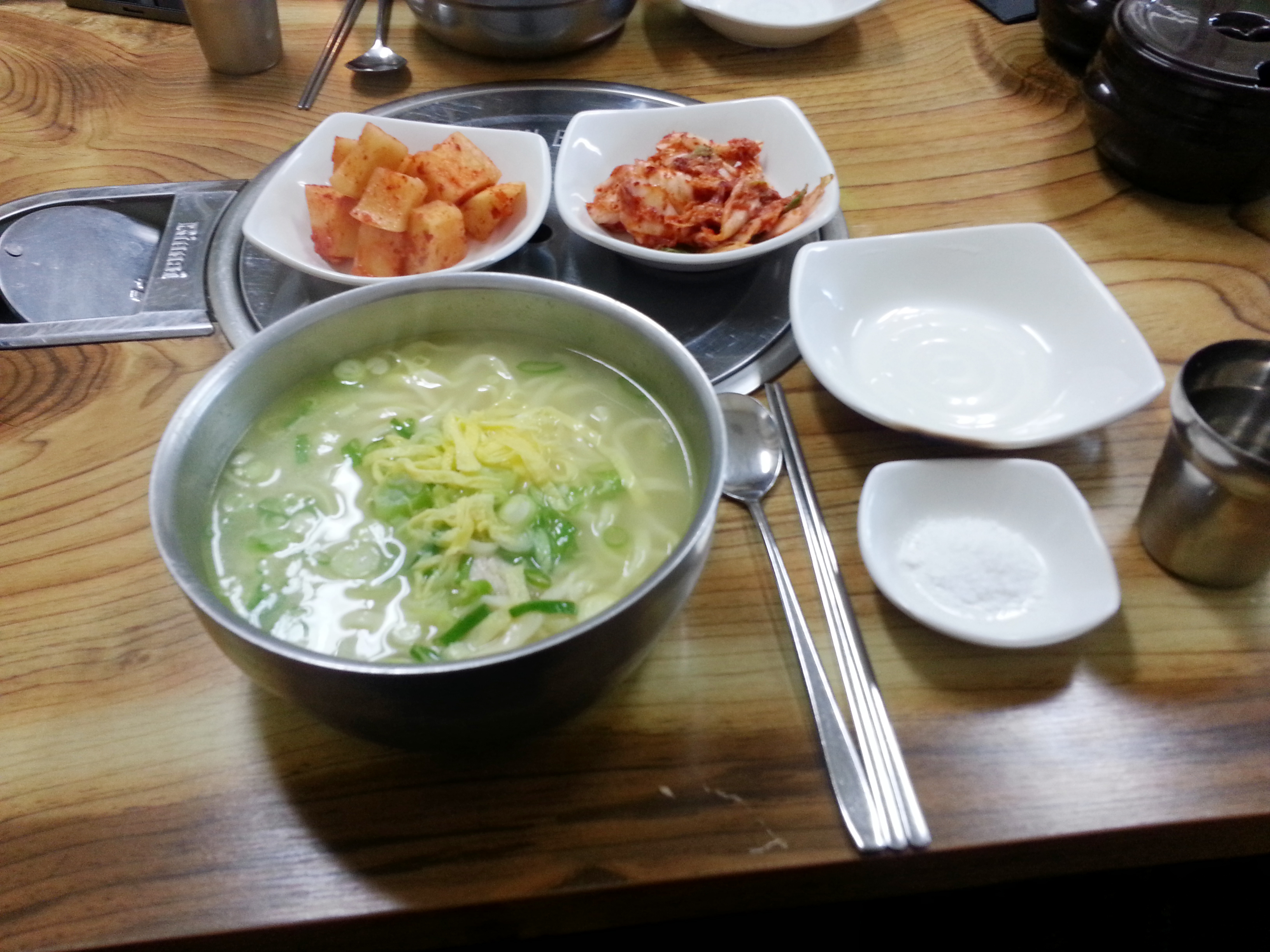 하지만 보통은 간을 맞추기보단 소금을 덜어 고기는 찍어 먹고 칼국수는 김치와 함께 먹는다.