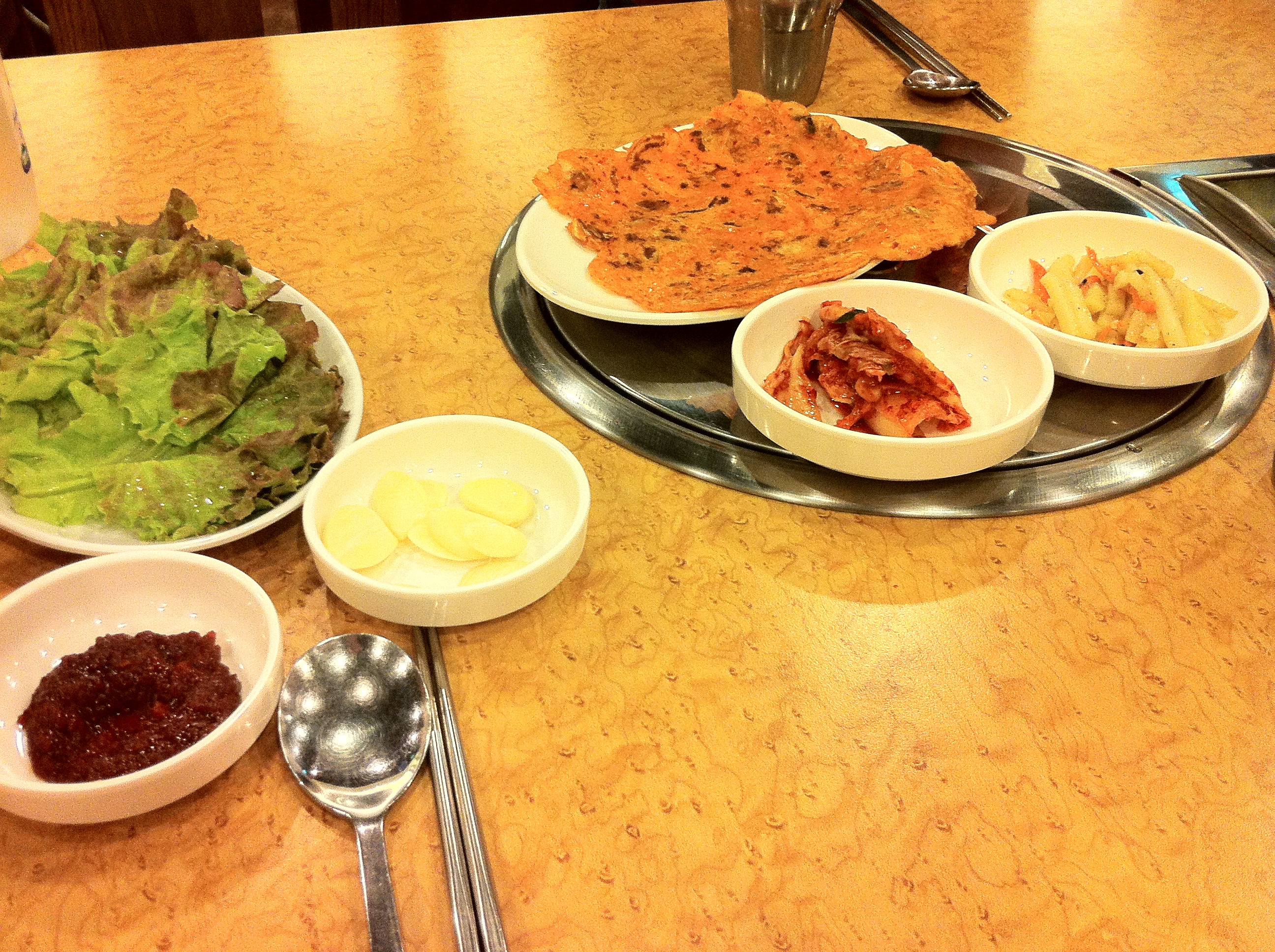 고기를 싸먹으라고 나오는 상추도 싱싱하고, 전으로 입을 달랠때 기분이 즐겁다!