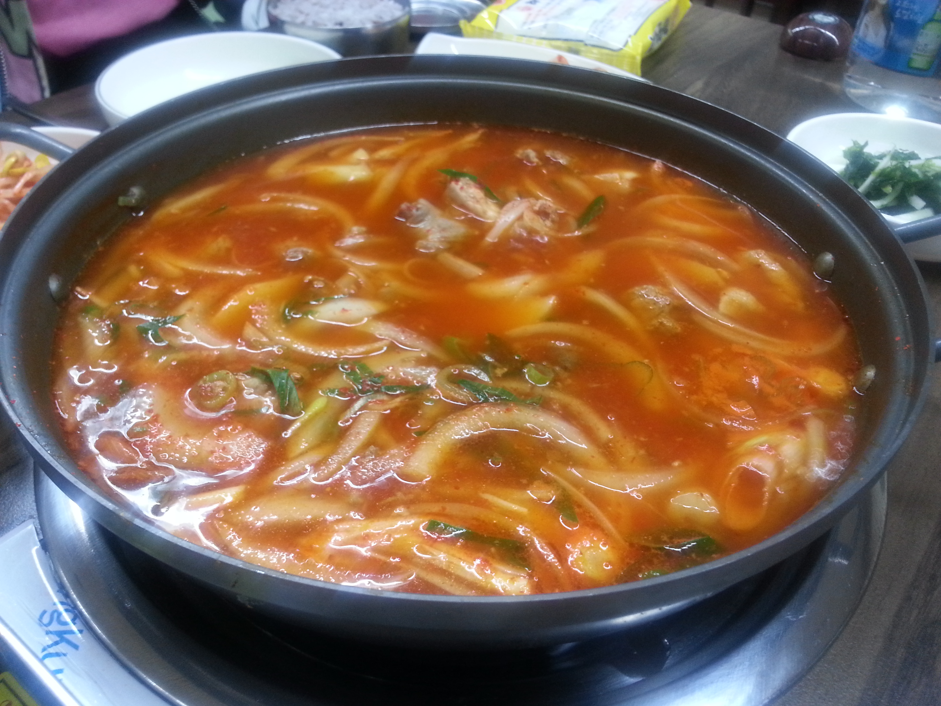 원래 뭐더라.. 냉이를 넣는다 하셨는데 젊은이들은 별로 좋아하지 않아서 라면으로 대체했다고 하셨다.