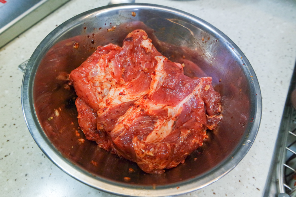 제대로 양념을 골고루 묻히고 싶다면, 먼저 양념을 만들고 고기를 숙성시키는 것도 좋다.