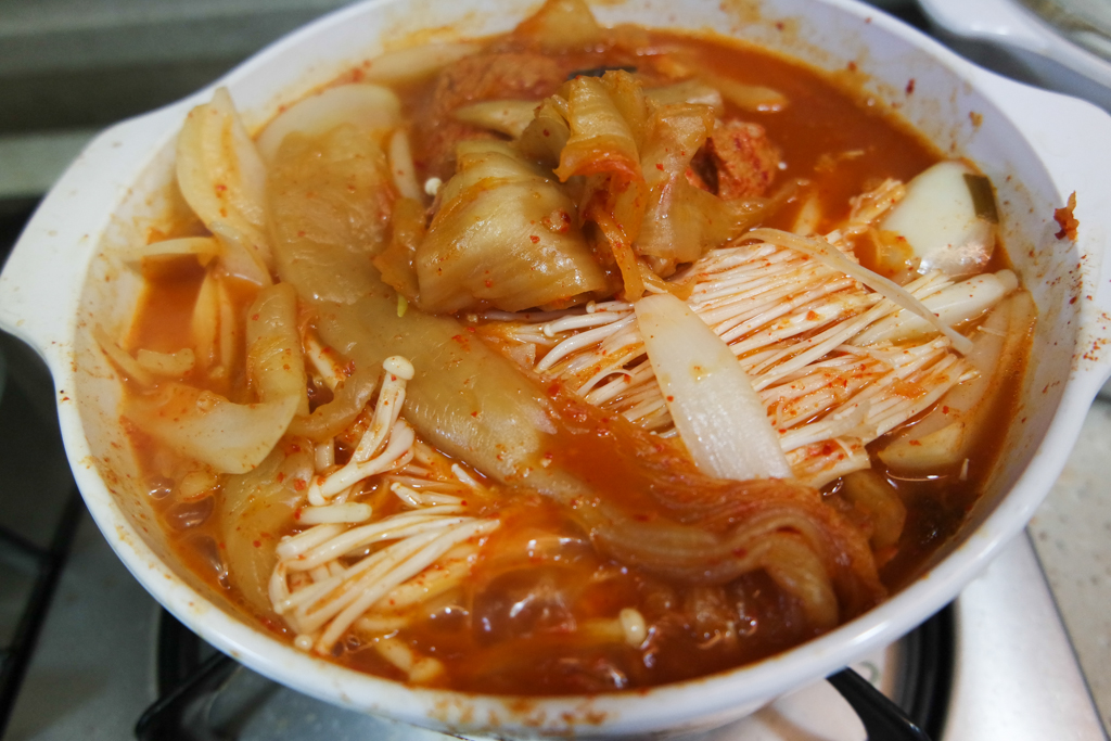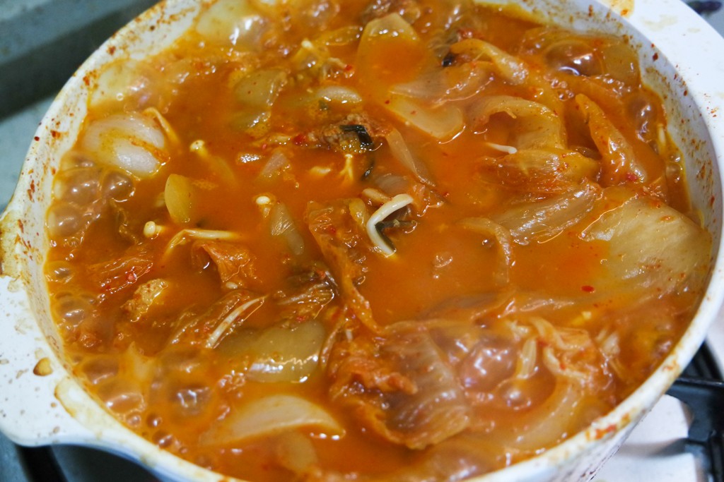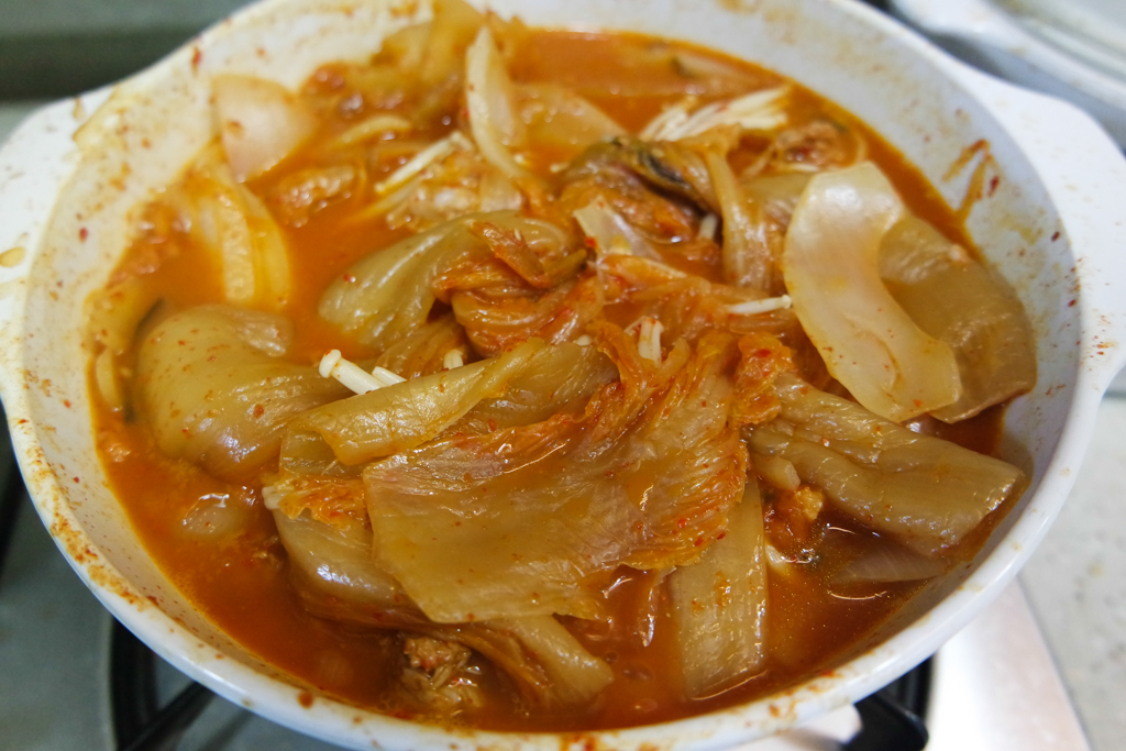 사실 이쯤이면 익어야 하는데, 난 작은 냄비에 김치 욕심을 내서 잘 안 익었다.(끄응…)