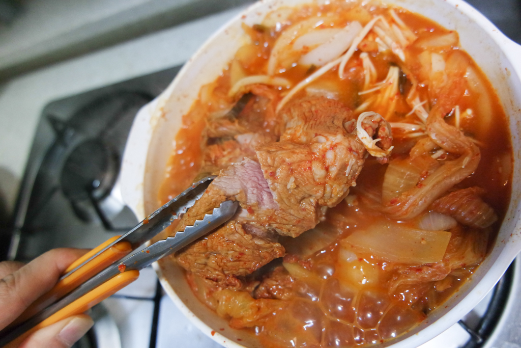 궁합이 잘맞는 고기를 이용해 묵은지찜(김치 지짐이/고기 김치찜 등 불리는 명칭이 많다)을 해먹어 보자.