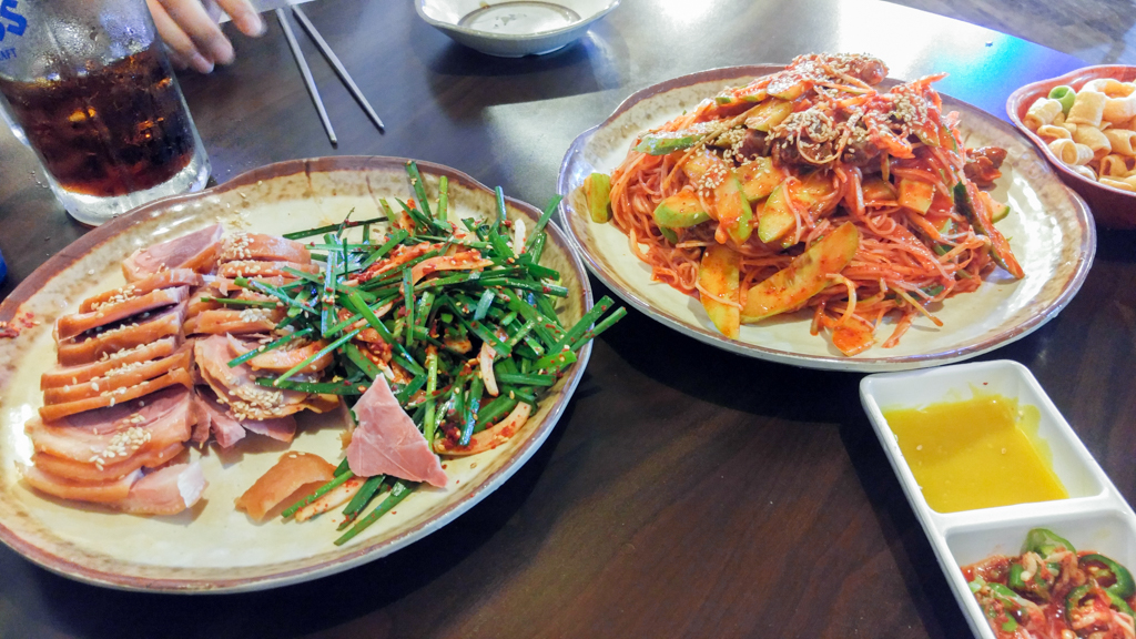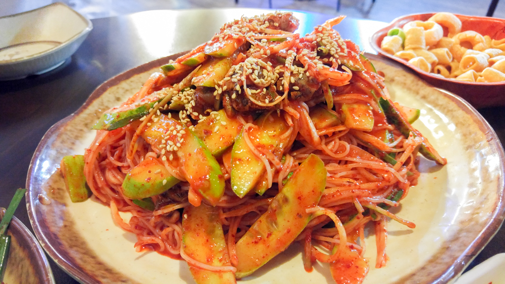 말 끝나기 무섭게 골뱅이 소면이 나왔다.